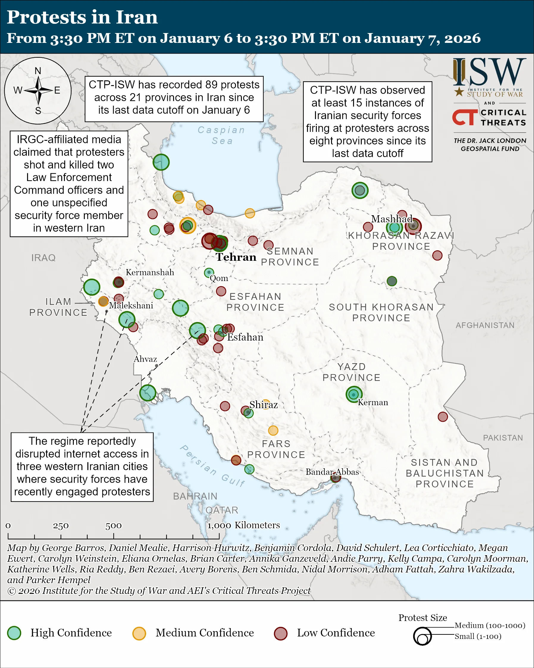 Kamran Bokhari, a former colleague, wrote about the protests for Geopolitical Futures, and this was the key point: “Protests alone do not usually bring down regimes. What does collapse regimes is security forces refusing to carry out the political leadership’s orders in the face of overwhelming popular resistance. In the case of Iran, the fragmented nature of the security establishment and its pervasive role in decision-making complicate this picture.”6 The key thing to watch for going forward is whether the regime blinks. There is plenty of speculation that is already happening — from the irresponsible (and ultimately untrue) reports that the Supreme Leader is planning to decamp to Moscow, to more measured accounts of the Supreme Leader’s replacement by “a de facto leadership council composed of the president, the speaker of parliament, the head of the judiciary, and senior representatives from the IRGC and the regular army.”7