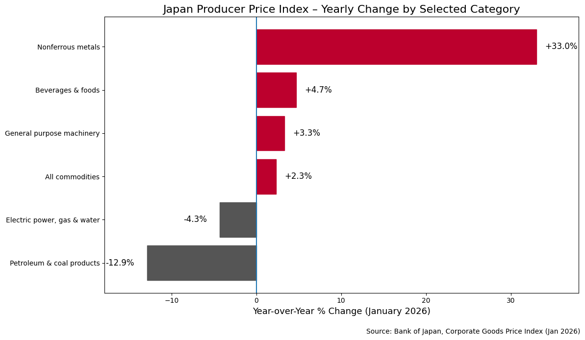 In simple terms, that means yen depreciation (year-over-year) minus nominal wage growth (year-over-year) will tell us how Takaichi is doing. If depreciation is (relatively) modest and wage growth outpaces it, the system stabilizes. If depreciation accelerates and wages lag, purchasing power erodes and Takaichi’s industrial strategy starts colliding with household reality.